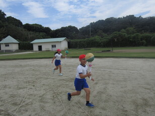 今年の4・5年生のチャンス走は、「かってに聖火リレー2024」です。聖火に見立てたカップにボールを乗せて走り、セストボールゴールにボールを入れたらゴールに向かって走ります。今日の練習では、走っている途中でボールが落ちてしまったり、セストボールゴールにうまくボールが入らなかったりしていましたが、運動会本番ではチャンスをつかんでゴールまで走りきれることでしょう。