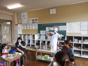 親子給食でも、栄養教諭が教室を回って、栄養指導を行いました。