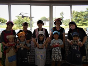 親子給食の後は、町役場まちづくり課のおさとさんの指導で、「親子味噌玉づくり」を行いました。3種類の味噌は、町の3つの事業所で作られたもので、それぞれ、色や香り、味が異なりました。普段、味噌自体を口にしたこともない子どもたちでしたが、「おいしい!」と香りや味を堪能していました。