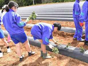 6月1日(木)1年生による芋苗植えを、学校園から古原地区に場所を移して行いました。畑は、PTA役員の石井さんが提供してくださいました。生徒は協力して手際よく苗を植えることができました。自分たちでも1本の畝をつくり、マルチシートを張りました。また、夏休みに1年生で草取りを、10月には香取特別支援学校の生徒たちと協同での芋掘り会を予定しています。芋の出来栄えがとても楽しみです。