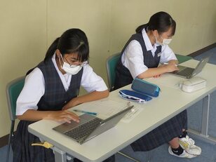 2年生の授業、総合的な学習の時間の様子です。夏休みに実施予定の職場体験学習について調べています。