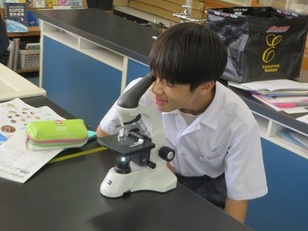 3学年理科の授業の様子です。皆さん、興味深く観察を行っています。